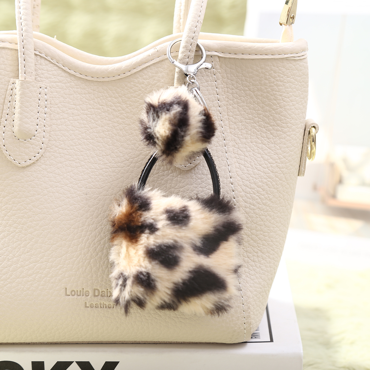 Creative leopard print bag key chain student cute plush cartoon pendant car key chain wool ball pendant accessories